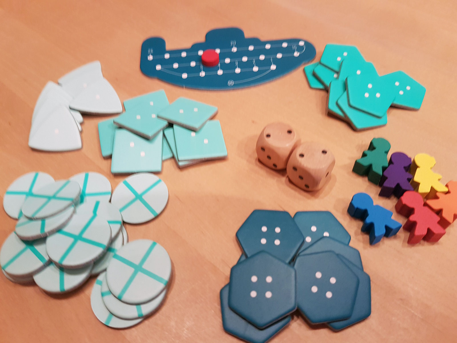 Das Spiel ist schnell ausgepackt, aufgebaut und schon geht’s los. Nach 30 Minuten ist es schon wieder aus. Natürlich ist es ein Glücksspiel, denn die Würfel bestimmen mehr als jede taktische Überlegung, was mit meinem Taucher passiert. Auch die zufällig ausgelegten Chips mit den unterschiedlichen Punktewerten steigern den Glücksfaktor.