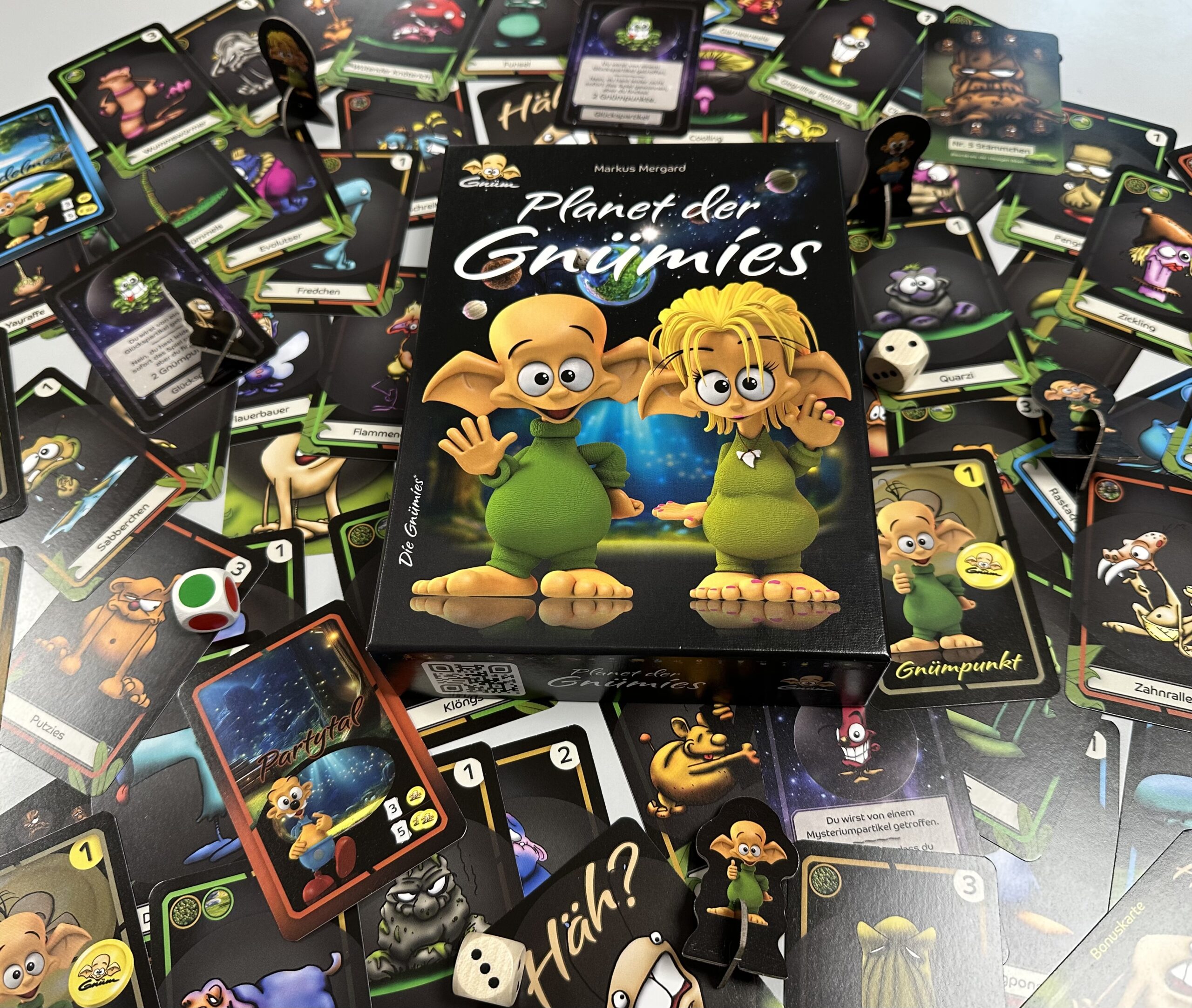 Auf Planet Gnüm ist alles ein bisschen anders. Da wuseln skurrile Wesen über bunte Landschaften, Pflanzen haben herrlich bekloppte Namen und irgendwo sitzt bestimmt ein Nervling und kommentiert das Geschehen. Spätestens, wenn man die erste Karte in der Hand hält, ist klar: Hier wollte niemand „noch ein Familienspiel“ machen, sondern eine eigene kleine Welt auf den Tisch bringen.