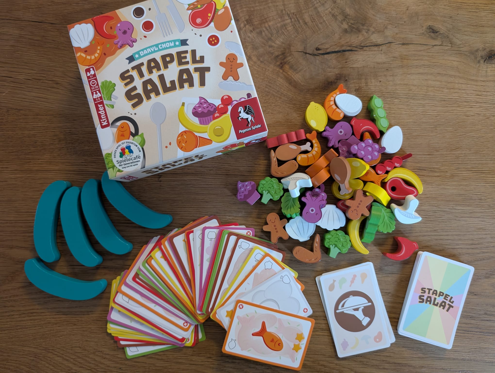 Zwar erfindet das Spiel das Prinzip nicht neu, doch das stimmige Thema sorgt für frischen Spielspaß. Für Kinder ab 6 Jahren und alle, die eine kleine Geschicklichkeits-Herausforderung oder eine Abwechslung zu Klassikern wie „Tier auf Tier“ suchen, ist Stapelsalat eine schöne Wahl.