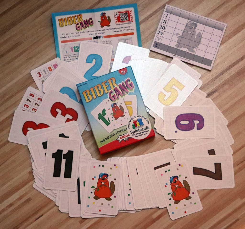 Biber Gang ist in dieser Reihe mein Lieblingsspiel. Es hat einen sehr hohen Wiederspielreiz, ist spannend und kurzweilig. Die Karten sind wie üblich bei Amigo wertig und die Zahlen sind alle sehr groß gedruckt, sodass das Spiel auch generationentauglich ist. Es hat kurze gut verständliche Regeln und spielt sich in kleiner und großer Besetzung gleich gut. Das Spiel Biber Gang ähnelt dem Spiel Skyjo. Die Auslage ist jedoch kleiner und somit überschaubarer. Bei Skyjo werden Reihen mit gleichen Karten aus der Auslage entfernt. Hier bleiben sie liegen und potentieren sich sogar.