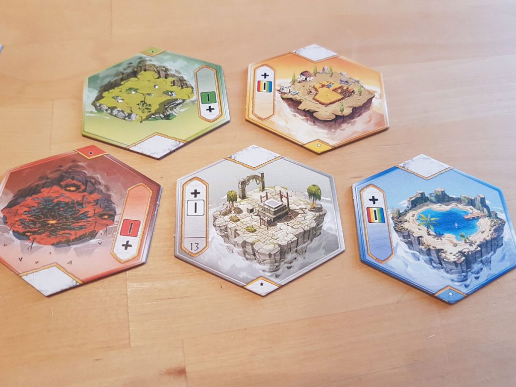 Sowohl taktisch als strategisch kann man dieses Spiel angehen. Das hat einen großen Vorteil. Das Spiel ist nicht komplex. Es spielt sich locker-flockig, ideal für ein schnelles Spiel zwischendurch, und für ein schnell erklärtes und problemlos gespieltes Familienspiel, auch für Leute mit wenig Spielerfahrung. Einzig die unterschiedlichen Möglichkeiten der fünf (sechs) Landschaften müssen genauer erklärt werden und dann natürlich die ausliegenden Gottheiten.