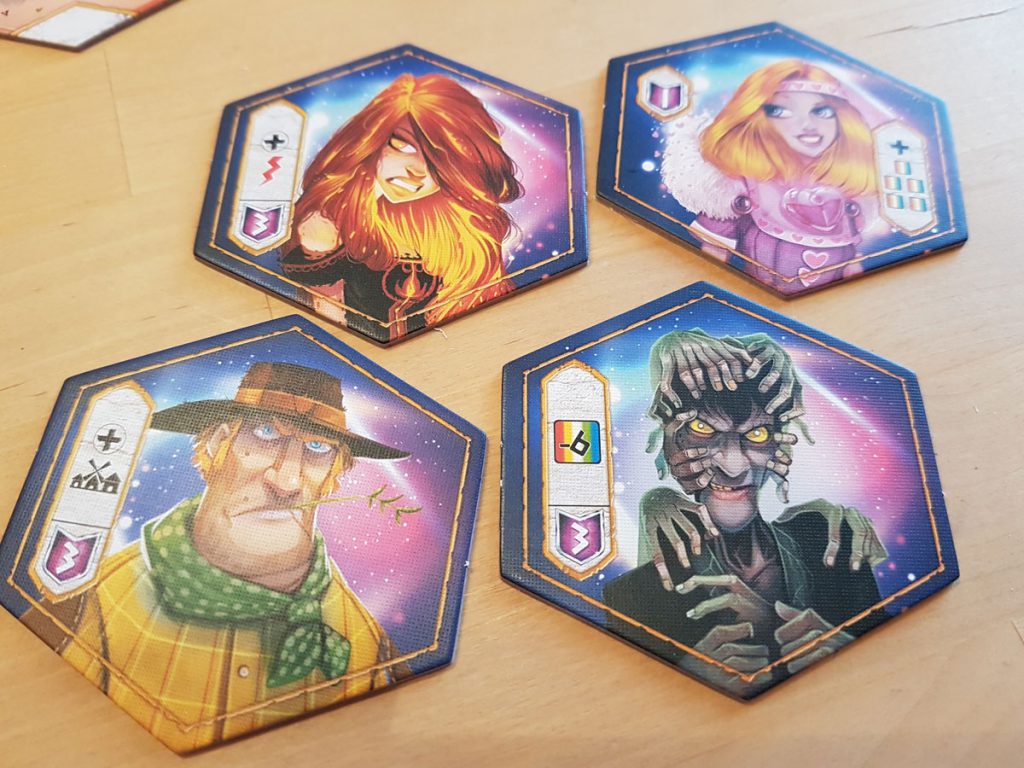 Diese Anhänger braucht man, um die Landschaft zu bezahlen, will man es in seine eigene Welt legen. Kann man oder will man das nicht, muss man es mit der Rückseite nach oben ablegen. Das hat Vor- und Nachteile. Schlecht ist, weil es am Ende Minuspunkte für Wildnis gibt und weil man einen wertvollen Platz verschenkt. Denn die Welt hat nur Platz für 14 Plättchen. Da die Landschaften allesamt positive Auswirkungen haben, nimmt eine Wildnis einen wichtigen Platz weg.