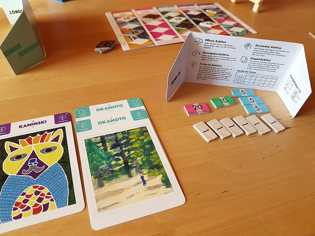 Die unterschiedlichen Versteigerungen machen Spaß, weil es nicht eintönig wird. Die interessante Abrechnung macht es tricky, denn Gemälde von Künstlern, die gerade nicht gehandelt werden, sind nichts wert. Dafür steigern alle auf die scheinbar lukrativsten.. Wenn sie denn am Rundenende tatsächlich noch lukrativ sind. Es empfiehlt sich, die Mitspieler zu beobachten. Und die Gemälde der Künstler zu zählen, damit einen das Rundenende nicht kalt erwischt.
