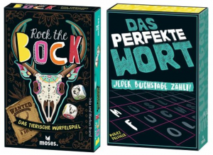 Rock the Bock: Wer hat Bock auf ein tierisch gutes Würfelspiel? Einfacher geht’s nicht: Die Rehe bringen Pluspunkte. Dafür braucht man die Böcke und Geißen. Aber es ist ratsam, immer ein Auge auf die Mitspieler zu haben. Sie jubeln Ihnen Wölfe unter und machen so die schönen Punkte zunichte. Da hilft nur eins: Rehe durch die Runde bringen und die Minuspunkte den anderen zuschieben. Na, wer rockt am Ende das Spiel?