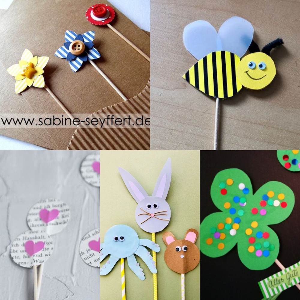 Wir basteln frühlingshafte Steckerl für Blumentöpfe: