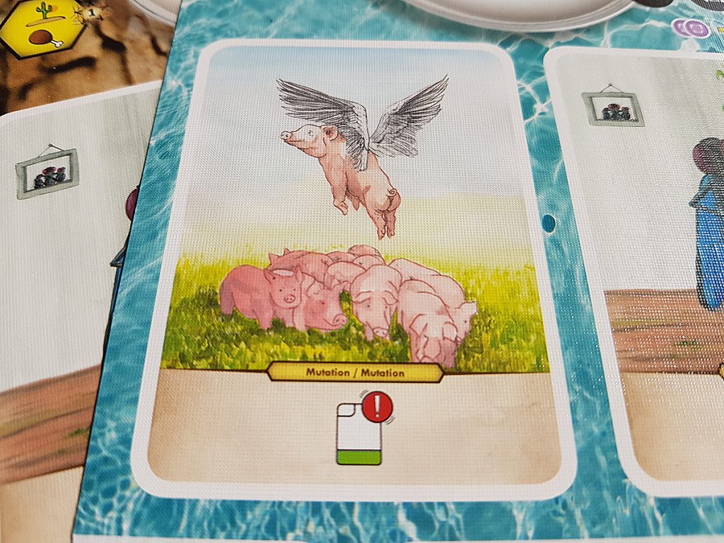 Die Lernkurve ist etwas steil, man sollte sich nicht nach der ersten Partie abwenden, denn das Spiel hat viel zu bieten. Gelegenheitsspieler werden anfangs gefordert, mit den vielen Karten klarzukommen. 15 Spezialisierungen, außerdem kann man jede Karte ja auf vier verschiedenen Arten an seine Spezies anlegen – uff, da gibt es einiges zu lernen. Aber nach zwei, drei Partien kennt man die Karten, die Möglichkeiten und dann macht es Spaß, sich zu entwickeln und der Evolution ein Schnippchen zu schlagen, wenn man sich als kleiner Frosch gegen Elefanten durchsetzt.