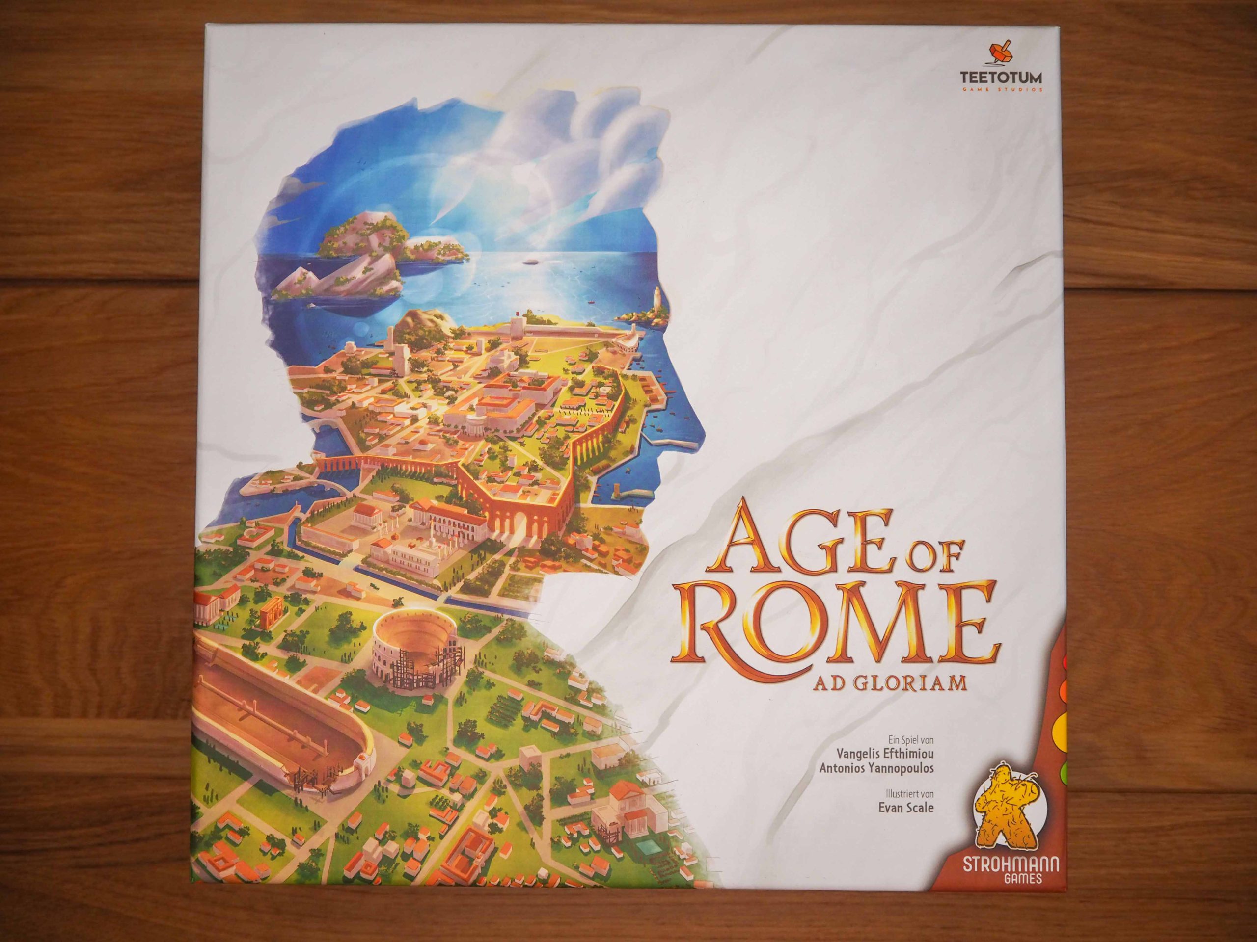 Probiert „Age of Rome“ gerne mal aus, wenn ihr in den Kennerbereich einsteigen wollt und auch, wenn ihr nicht auf altbekannte Mechaniken verzichten wollt und ein hochwertiges Spiel sucht mit einer vergleichsweise kurzen Spielzeit von 60-90 Minuten.