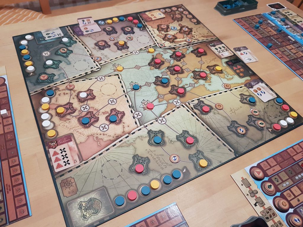 Wir befinden uns im Mittelalter, das Zeitalter der Segelschiffe und Kolonialisierungen. Und es zieht uns hinaus in die verschiedenen Kontinente, um Schifffahrtsrouten zu entdecken, fremde Länder zu kolonialisieren, Städte unter unsere Verwaltung zu stellen und dabei auch mal dem Mitspieler eine Stadt oder eine der lukrativen Verbindungen wegzuschnappen. Gerne lassen wir uns zum Gouverneur einer Kolonie ausrufen oder wir kämpfen um die Vorherrschaft in Europa.