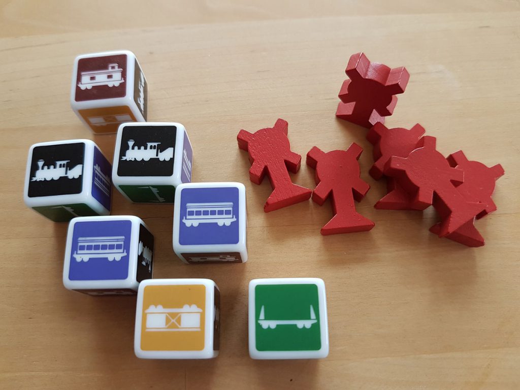 Relativ simpel und doch ausgesprochen zäh zu spielen. Denn nicht in jeder Runde schafft man die Anforderungen an den richtigen Zug, und noch seltener gelingt der Abschluss mit einem Dienstwaggon. So zieht sich das Spiel und es kommt vor, dass man über mehrere Runden keinen Zug zusammenbringt. Das ist frustrierend und unnötig. Zwar kann man mit dem Marker etwas beeinflussen, der lässt uns nämlich einen Würfel auf eine gewünschte Seite drehen. Aber man kann nur einen Marker erhalten und erhält ihn nur, wenn man mit dem ersten Wurf keine Lokomotive würfelt. Es gab bei uns Spiele, da wurden nur ein oder zwei Marker vergeben, und wohl nur einer von fünf Würfen führte nicht zum Entgleisen.