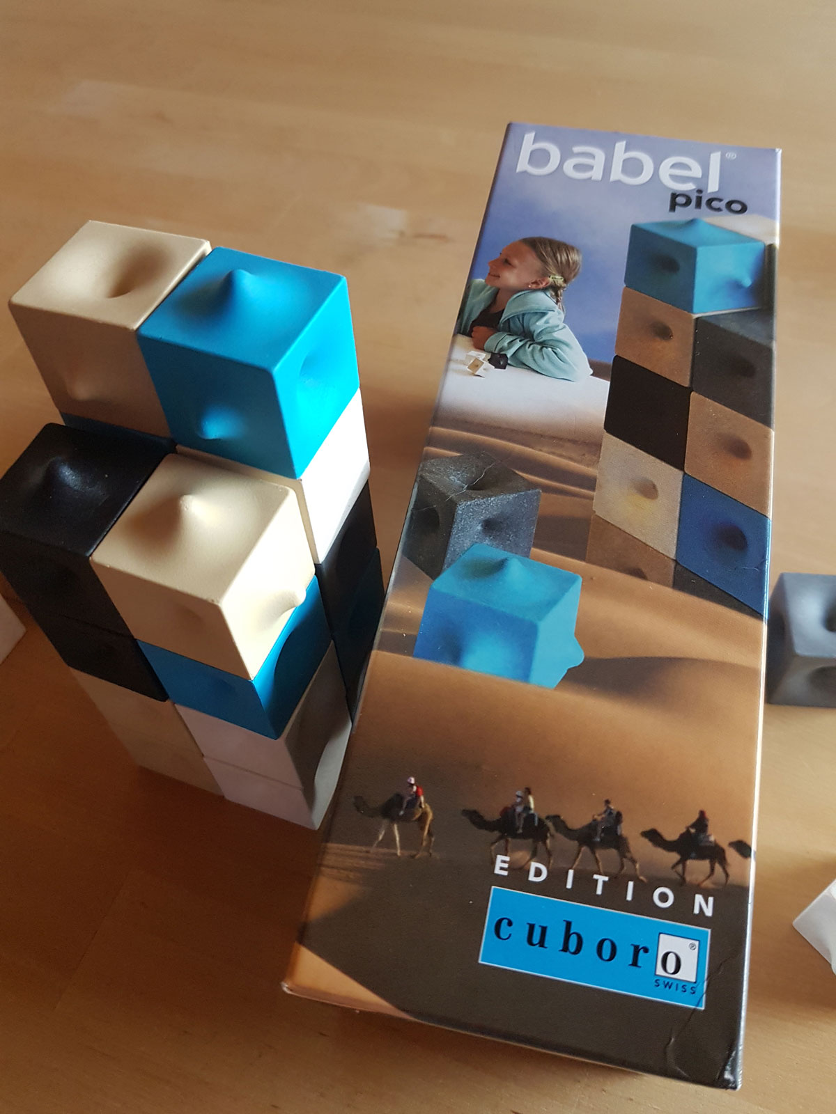 „babel PICO“ ist ein unaufgeregtes Spiel, eine Partie dauert keine 10 Minuten, man kann sofort eine Revanche einfordern und will das auch meist. Es ist ein Spiel für zwei Spieler, jede Altersgruppe kommt damit zurecht und auch Vielspieler haben kein Problem, das Spiel zu spielen, denn es wirkt so strategisch, so komplex, obwohl es das nicht ist, gar nicht. Es ist easy, locker, relaxed – ja fast meditativ. Mit den Würfeln, die so wunderbar in der Hand liegen, dem Turm, den man so einfach und stabil aufbauen kann, mit jeder Niederlage, die einem das Gefühl gibt, es „aber jetzt“ zu wissen, wie es richtig zu spielen ist. Es gibt nicht viele Spiele, die für mich in die Kategorie „entspanntes Spiel“ fallen, das gehört da hinein. Obwohl es ein Duell ist, obwohl es einen Sieger gibt und damit einen Verlierer, irgendwie vermittelt das Spiel „Wohlfühlatmosphäre“. Kann ein Spiel es besser machen?
