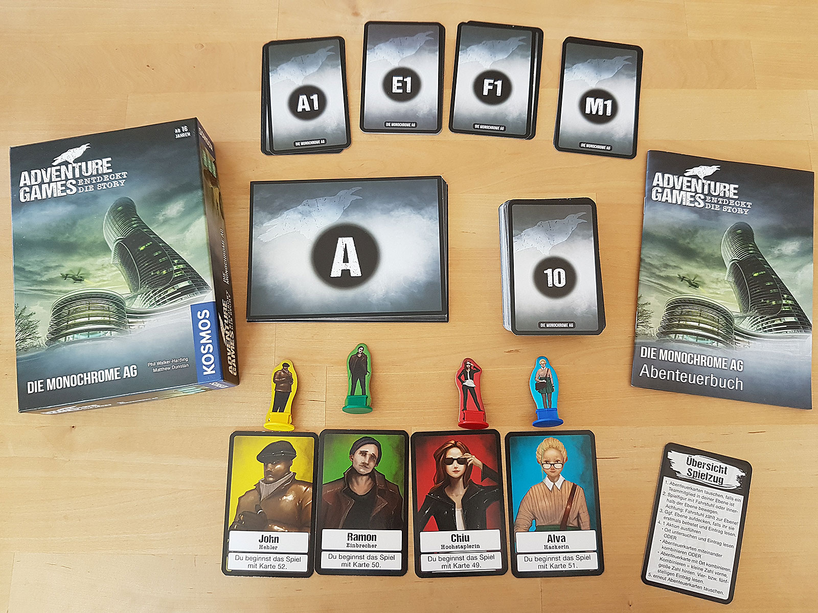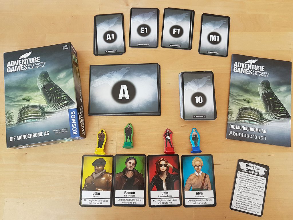 Meiner Meinung nach sind die Adventure Games eine wirklich unterhaltsame Sache. Die Kombination Story (wie in einem Buch) und Spiel ist perfekt gelöst. Die beiden gespielten Fälle („Das Verlies“ und „Die Monochrome AG“) konnten die kooperativen Spieler begeistern, auch solo sind sie tolle Unterhaltung – und mit ähnlicher Spannung gern auch ein zweites Mal oder öfter zu spielen. Bis man jeden Winkel der Geschichte durchstöbert hat (und es lohnt sich), muss man es sogar noch öfter spielen. Wer kooperative Spiele nicht mag, ist hier natürlich falsch am Platz. Wer aber gern mal einen spannenden Krimi liest, aber auch am Rätsellösen Freude hat, der hat hier eine optimale Kombination. Bei mir haben die Adventure Games einen besonderen Platz im Regal, auch wenn ich sie schon gespielt und gelöst habe. Aber ich kann mir gut vorstellen, sie bei Gelegenheit wieder herauszuholen und wieder eine spannende Geschichte zu erleben und mitzugestalten.