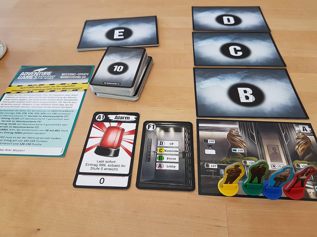Übrigens ist das genial gelöst mit den Nummern, denn die meisten Nummern ergeben sich durch geschicktes, richtiges Kombinieren von Aufgaben. Sehr gut gelöst, weil damit unglaubliche Spannung erzeugt wird, ist der ansteigender Alarmwert. Erreicht er einen bestimmten Wert, werden die Aktionsmöglichkeiten deutlich eingeschränkt. Oft entscheidet sich die Gruppe, lieber von vorn zu beginnen, as sich mit diesen Einschränkungen durch das Spiel zu schleppen.