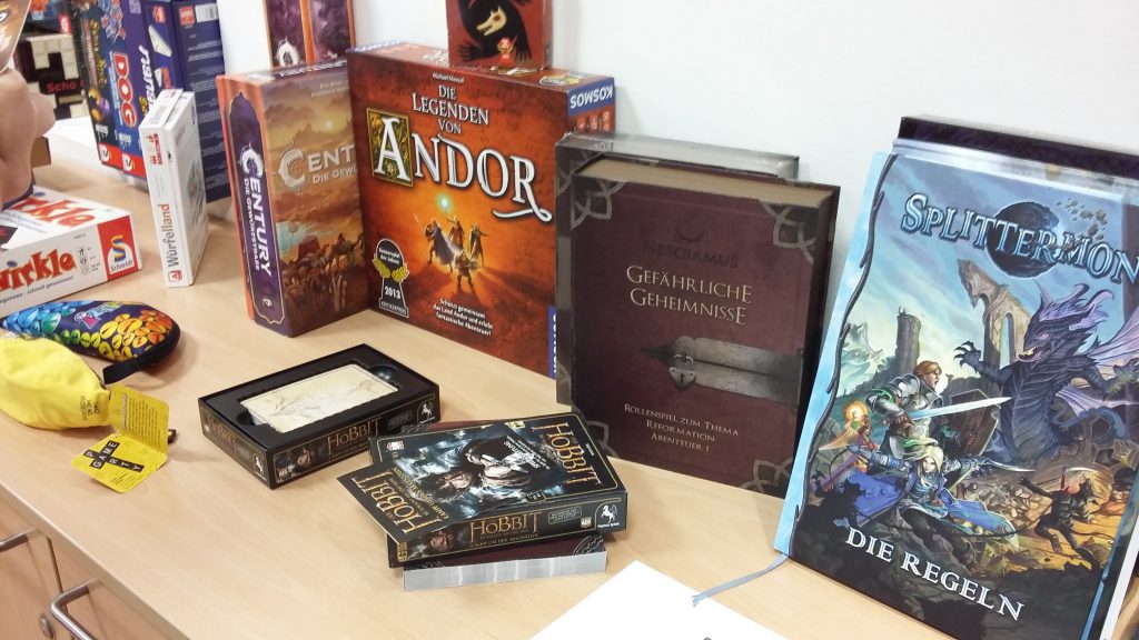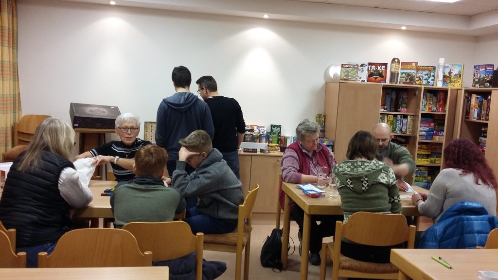 Zum einen hatten wir für Spiele und Zubehör einen Förderantrag beim Spiel des Jahres Verein gestellt. Wir dürfen mit Freude verkünden, dass der Antrag genehmigt wurde und wir für drei Jahre jährlich unterstützt werden. Vor allem der Zukauf von Spielen für die pädagogische Arbeit in Altenheimen, Kindergärten und Schulen ist geplant, sowie Spiel-des-Jahres-Spiele und ein paar wenige Besonderheiten für Expertenspieler. Auch ein Regal für unser Lager ist angedacht, so dass hier mehr Stellfläche entsteht.
