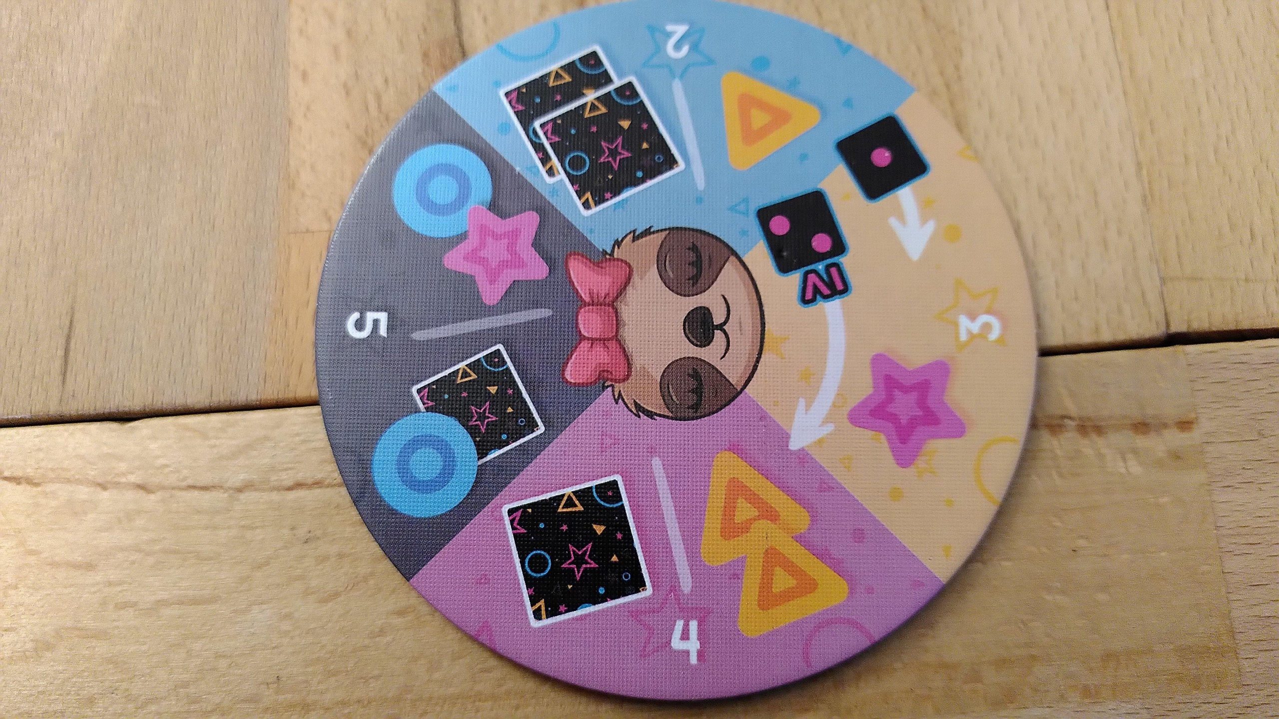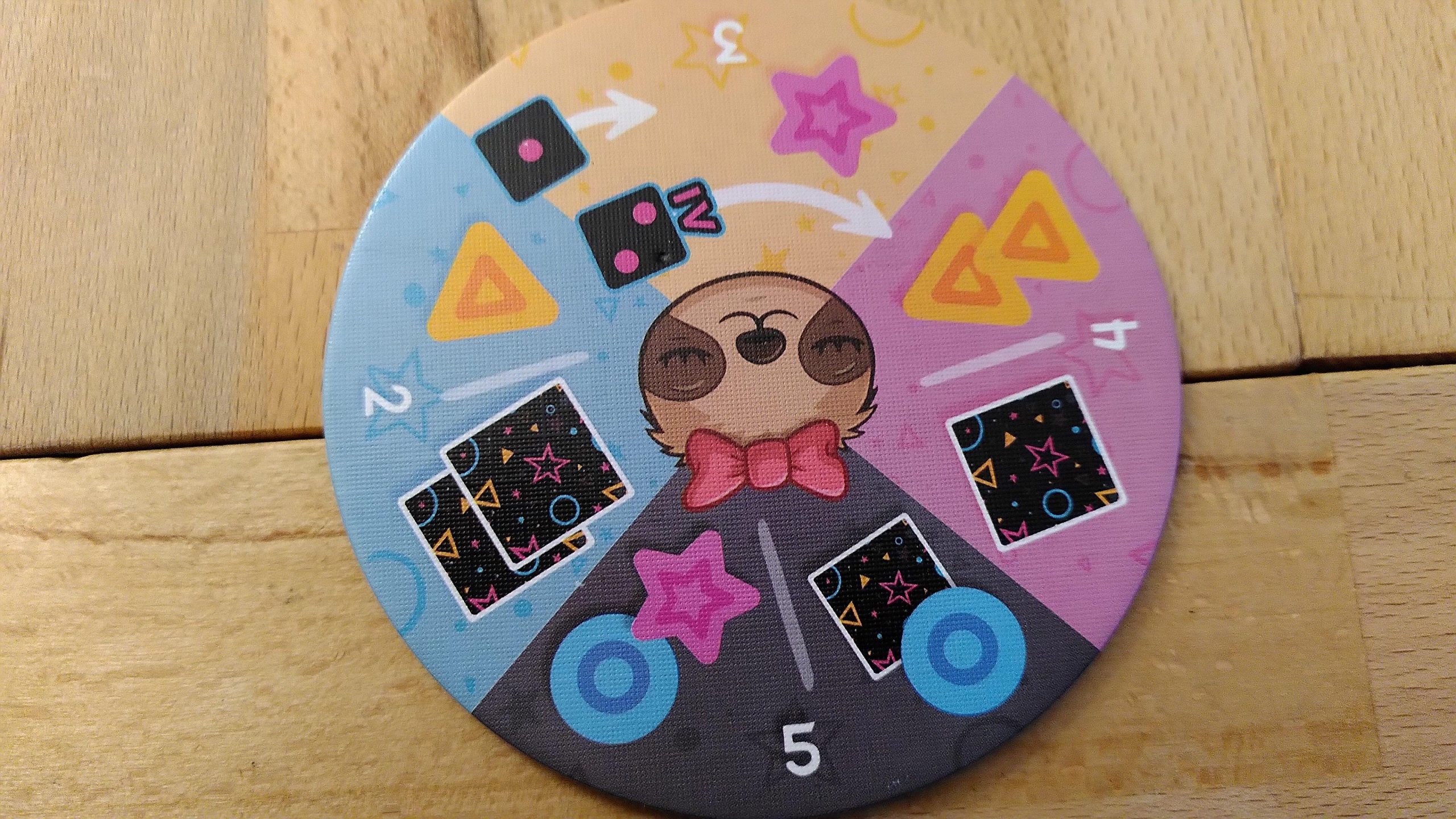 Um zu zeigen, in welcher Schlafphase du dich gerade befindest, legst du die Faultierscheibe mit der richtigen Zahl unten vor dir ab. In jeder Runde suchst du dir wieder eine der beiden Belohnungen aus und erwürfelst deine nächste Schlafphase. Man bekommt pinke Sterne, mit denen man das Würfelergebnis beeinflussen kann, wenn man möchte.