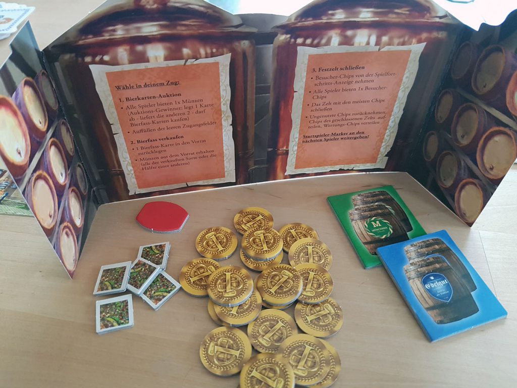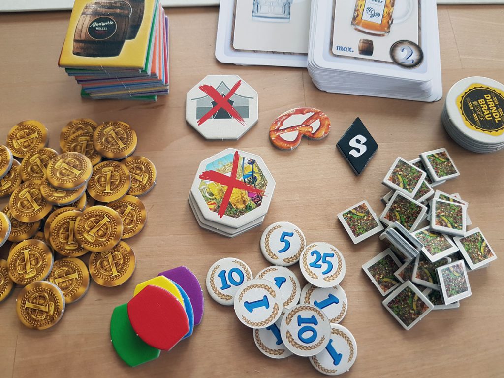 Klingt relativ stimmig. Dass das Geld begrenzt ist und man sich beim Steigern nicht übernehmen sollte, da man sonst sehr schnell kaum noch etwas tun kann, liegt in der Natur von Auktionsspielen. Dass man hier aber sehr schnell komplett aus dem Spiel sein kann, gibt’s eher selten. Dass das Kaufen der Anteile teuer ist und man im Gegenzug kaum planen kann, welches Bier wirklich wertvoll ist, macht das Ganze dann doch sehr glückslastig. Planung unterliegt dem Chaos, gerade ab drei Spielern. Mit fünf ist es Zufall pur. Dabei scheint es, als ob der Mechanismus viel hergibt. Man grübelt, aber nahezu umsonst. Per Zufall gespielt, ergibt sich am Ende ein fast gleiches Bild.