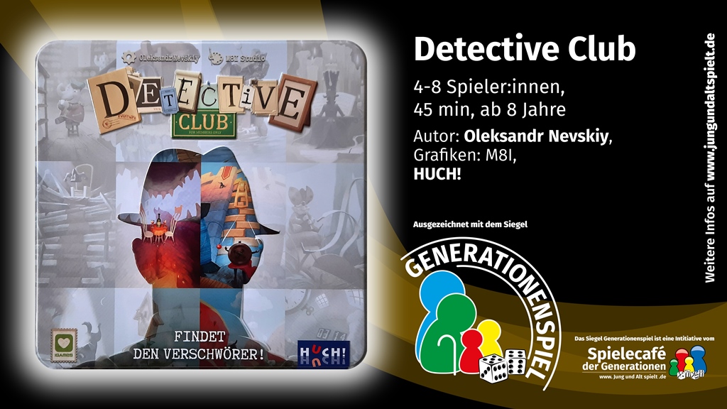 Unsere Rezension dazu: Detective Club ein tolles Gruppenspiel von IGAMES (Rezension) | Spielecafé der Generationen (jungundaltspielt.de)
