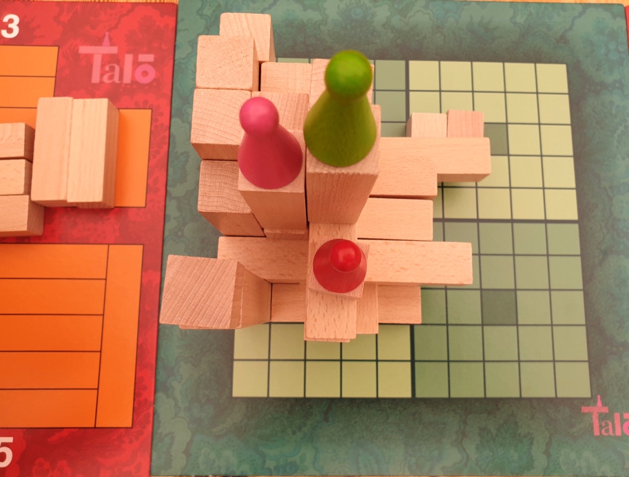 Insofern kann Talo sehr taktisch gespielt werden. Ideal daher für jede Altersstufe. Auch das Material überzeugt auf ganzer Linie. Hochwertige Bausteine aus Holz, große und gut greifbare Spielfiguren sowie sehr übersichtliche Spielpläne runden dieses tolle Spiel ab.