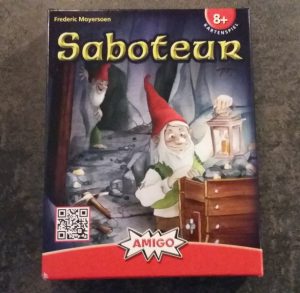„Als Goldsucher begeben sich die Spieler im Bergwerk auf die Jagd nach dem wertvollen Metall. Plötzlich zerbricht eine Spitzhacke und das Grubenlicht erlischt. Ein Saboteur hat zugeschlagen. Doch wer treibt in dem Stollen sein Unwesen? Werden die Goldsucher erfolgreich sein oder behält der Saboteur mit seinen finsteren Aktionen die Oberhand? Es bleibt spannend bis zum Ende! Nach drei Runden gewinnt der Spieler mit den meisten Goldstücken.“ (Text von Amigo: https://www.amigo-spiele.de/spiel/saboteur)