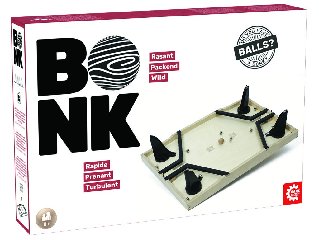 Eine ruhige Kugel können die Spieler bei diesem nervenaufreibenden Geschicklichkeitsspiel aus Holz nicht schieben. BONK ist schnell, zieht jedermann in den Bann und sorgt für unendlich viel Spielspaß. Teamplayer kommen schnell zum Sieg!