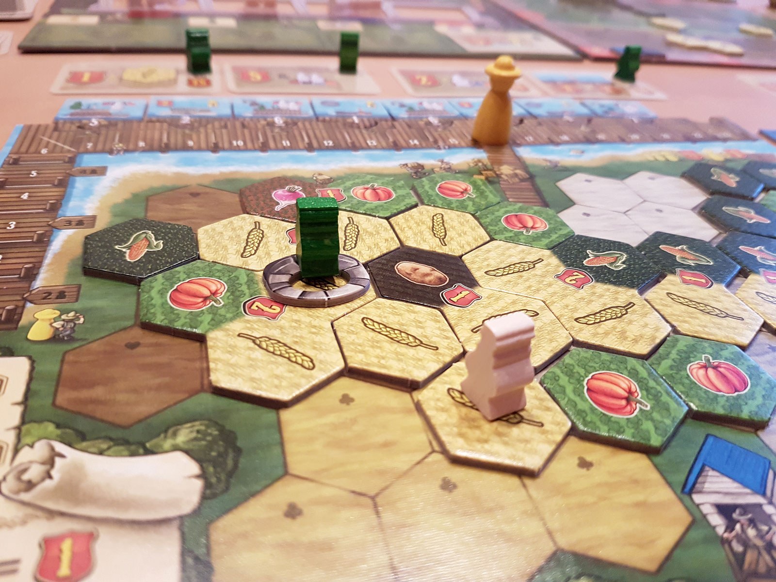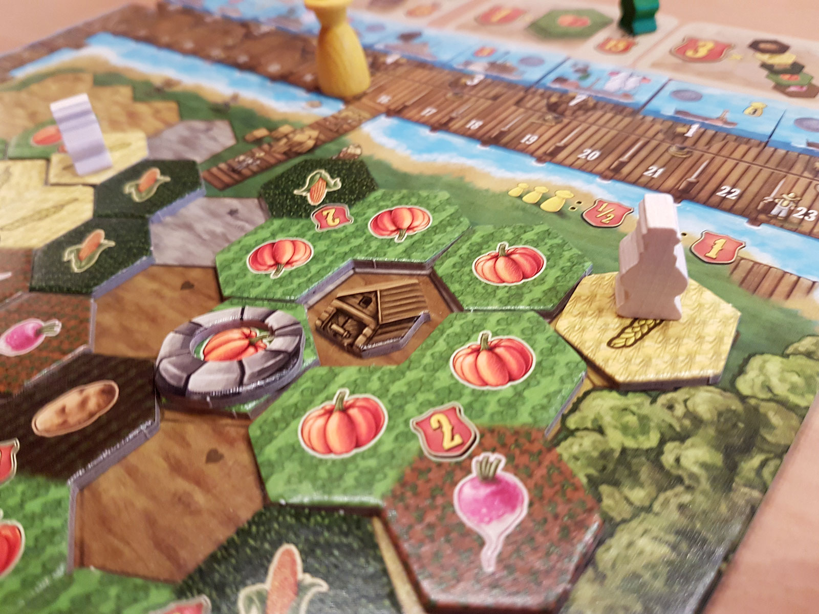 Dass man zusätzliche dicke Punkte holen kann, wenn man Brunnen oder Scheunen auf seinen Feldern baut oder es schafft, die Felder einer Gebietssorte abzudecken, macht das ganze Spiel noch interessanter, aber natürlich auch komplexer. Punkte lauern an allen Ecken und Enden und man darf eigentlich keine der Möglichkeiten außer acht lassen, um am Ende wirklich vorn mit dabei zu sein.