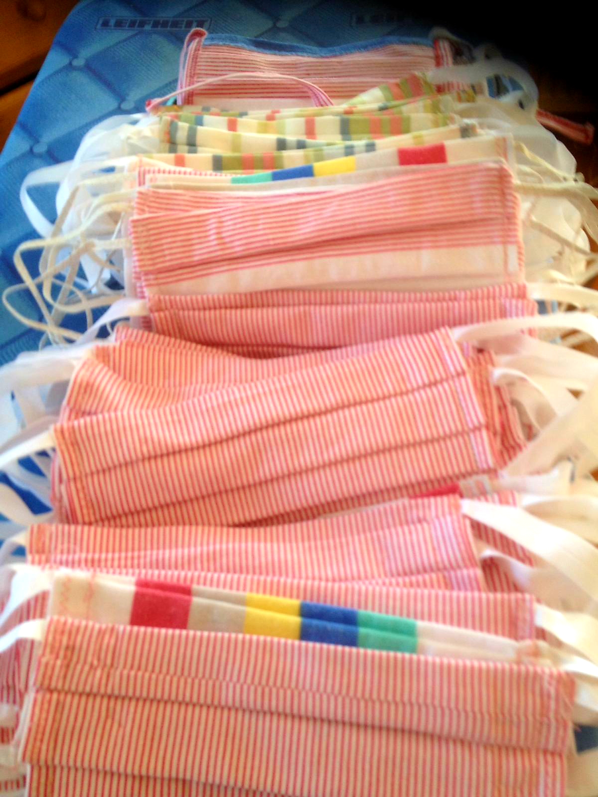 Somit gibt es bei mir zu Hause in Pfarrkirchen, Loh 2 eine Station, bei der Näherinnen ihr Material abholen und fertige Masken bringen können. An Einrichtungen und Privatpersonen können die fertigen Masken dann ausgegeben werden.