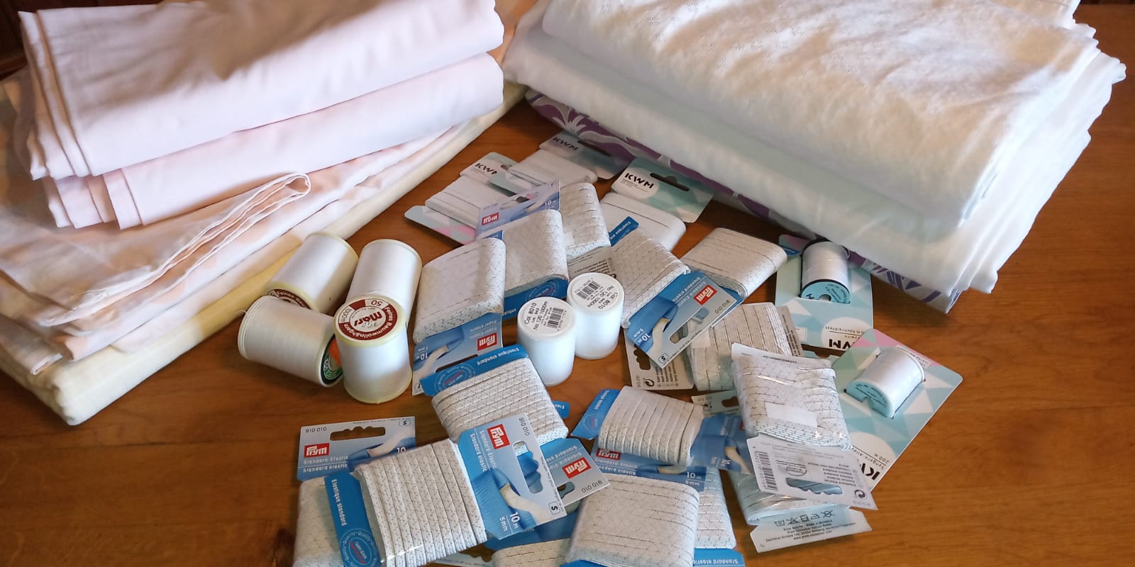 60 Grad waschbare Baumwolle, gewebt, sowie Gummibänder mit 5-7,5mm Breite. Auch Geldspenden für die Portoübernahme wären wichtig. Natürlich dürfen sich auch weiter Einrichtungen bei uns melden.