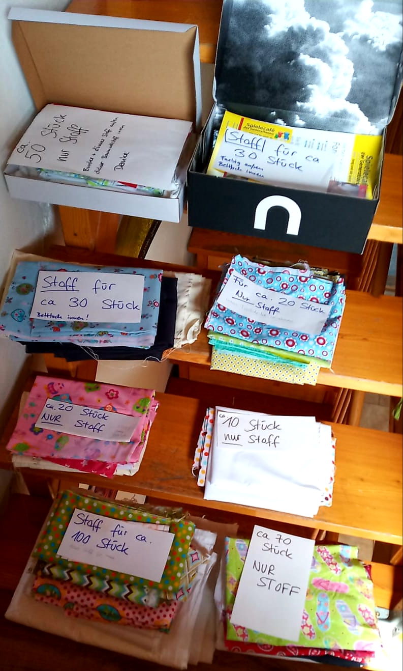 Ab morgen 10 Uhr könnt Ihr dort Material zum Nähen abholen (Bitte IMMER vorher anmelden!)