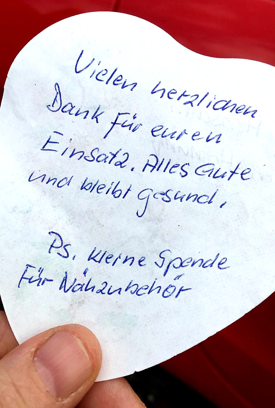 Über die vielen kleinen Liebesbriefe freuen wir uns übrigens auch sehr. Es ist eine tolle Wertschätzung für alle, die dabei sind, die nähen, die spenden, die es weitererzählen und die mit organisieren. Vielen Dank an Alle!