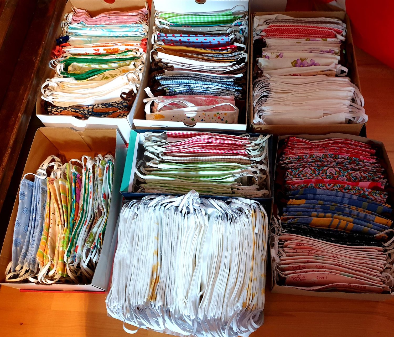 Der Stoff geht uns auf jeden Fall nicht so schnell aus. Täglich kommen Lieferungen an den mittlerweile 9 Verteilstationen an. Von vielen privaten Personen, aber auch vom Firmen wie z.B. dem Stoffgeschäft „Kleine Könige“ aus Chemnitz. Ja, richtig gelesen. An 9 Stationen wird im Landkreis nun Material herausgegeben und Masken zurückgenommen. Mit dazu kamen Simbach/Inn, Gangkofen und Mitterskirchen. Wir sind begeistert von der Hilfsbereitschaft. (Weitere Infos siehe HIER!)