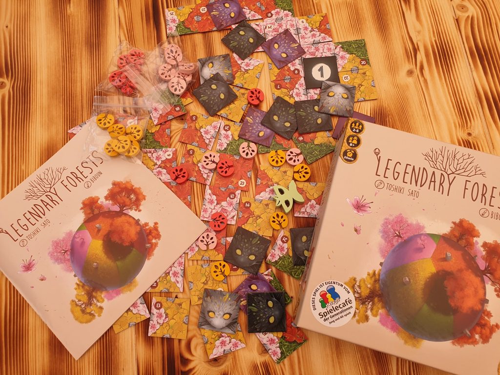 Die Grafik scheint mir typisch für Iello. Irgendwie erinnert es mich ein wenig an Saikatsu oder vielleicht auch eher an The Legend of the Cherry Tree. Das Design der beiden Spiele hatte mich sofort angesprochen. War ich von Saikatsu begeistert, enttäuschte mich The Legend of the Cherry Tree spielerisch jedoch. Was also erwartete mich nun bei Legendary Forests? Die Grafik wollte mir auf jeden Fall gleich gefallen. Doch auch das Spielprinzip? Ich war gespannt.