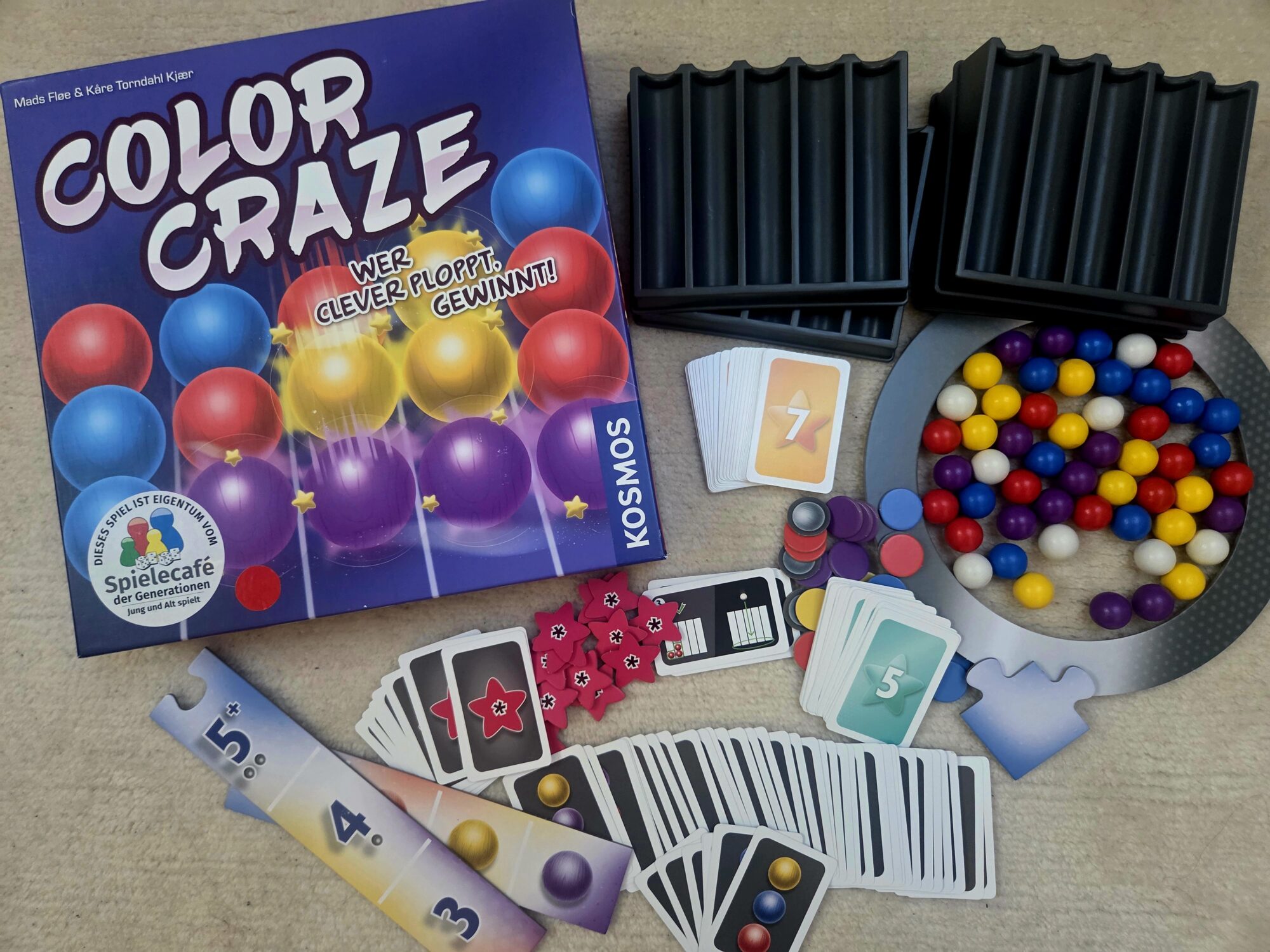 Generationentauglichkeit: Ja, gute Farbendarstellung auf den Karten. Die Entnahmen der Kugeln aus der Kugelbahn könnten evtl. etwas frickelig werden.