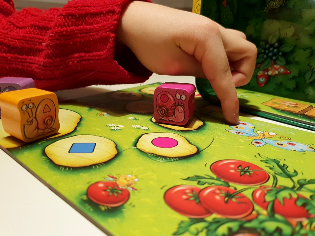 Der Spielmechanismus an sich ist denkbar einfach und tatsächlich gut mit 5 Jahren zu verstehen. Die Kinder müssen beim Vorziehen der Schnecken Symbole und Farben beachten und diese mit dem Spielplanfeldern vergleichen. Das bekommen sie gut hin und macht viel Spaß. Etwas schwerer haben es die Jüngeren, zu verstehen, wie die Wettkarten gewertet werden. Das hat teilweise zwei-drei Runden gebraucht, bis klar war, was die Karten bewirken und wie sich die Punkte verteilen. Doch einmal verstanden, kam das Spiel bei einigen Kindern regelmäßig auf den Tisch.