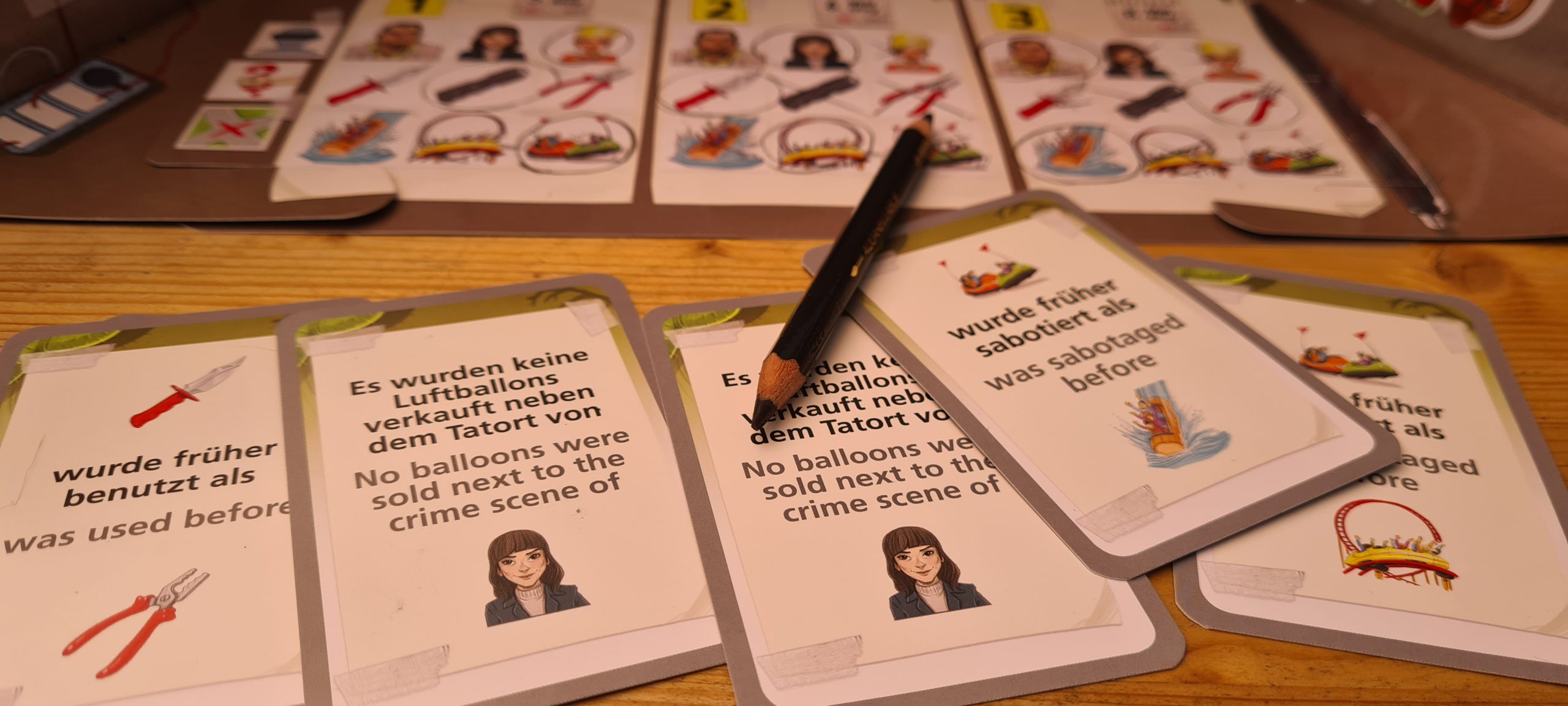 An drei Tagen im Mai wurden drei Attraktionen im Freizeitpark von drei verschiedenen Täter:innen mit drei verschiedenen Tatwerkzeugen manipuliert. Zum Glück wurde dies rechtzeitig bemerkt, so dass nichts Schlimmeres passiert ist. Allerdings gilt es nun herauszufinden, wer wann und wie welche Attraktion manipuliert hat.