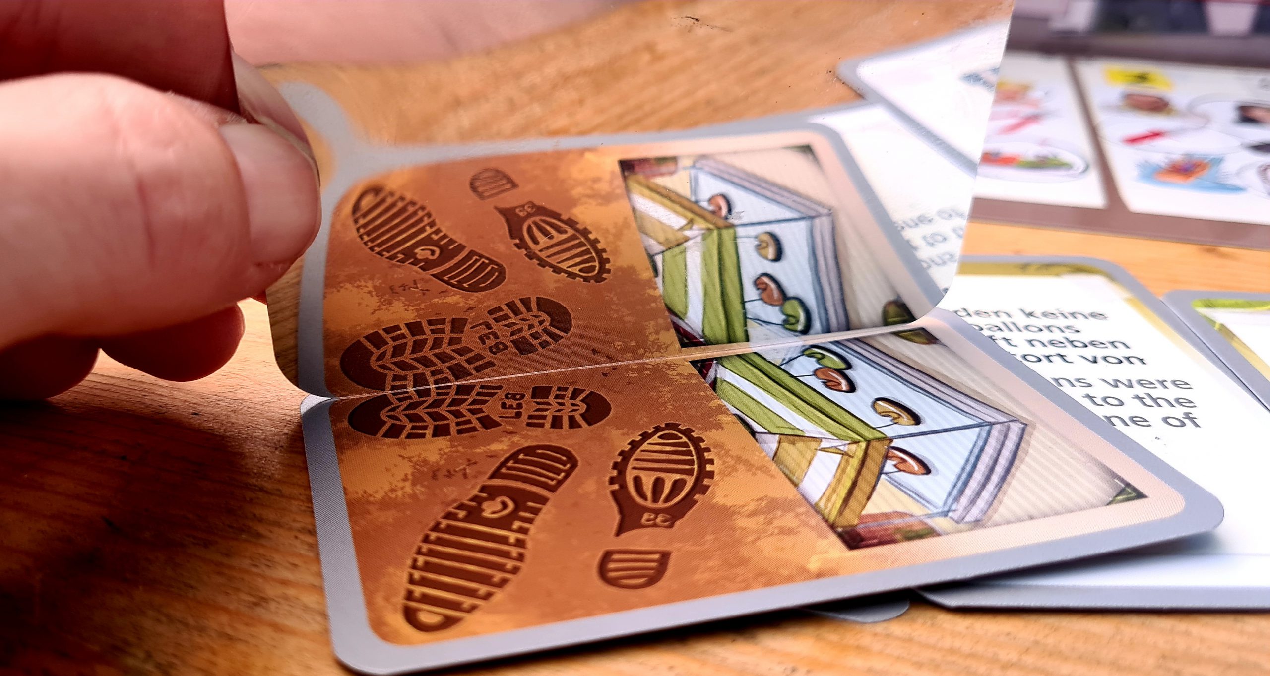 Zudem kann es vorkommen, dass die gleiche Information mehrfach herhalten wird, während benötigte auf sich warten lassen. Dabei sollten alle Spielenden stehts hoch konzentriert bleiben. Denn anders ließen sich beispielsweise die kaum wahrnehmbaren Unterschiede bei den Fußabdrücken kaum unterscheiden. Auch sollte eine gute Portion Vorstellungsvermögen vorhanden sein, um die Schnappschüsse aus den Fotostationen zuordnen können. Dabei fehlte es uns teilweise an Eindeutigkeit. Andererseits steigerte dies die Spannung. Ein Fall ist eben nicht immer mit wenigen Karten zu lösen.