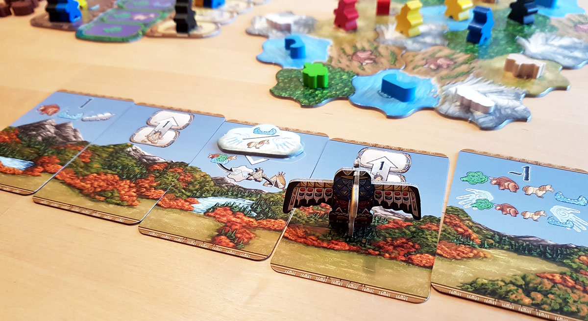 Grafisch ist es ein Highlight, die Verarbeitung ist vorbildlich und die Holzmeeples wunderbar gestaltet. Mit den Totem-Scheiben und dem darauf sitzenden Adlerkopf ist es auch am Spieltisch ein echter Hingucker. Die Regeln sind ausführlich und lassen keine Fragen offen.