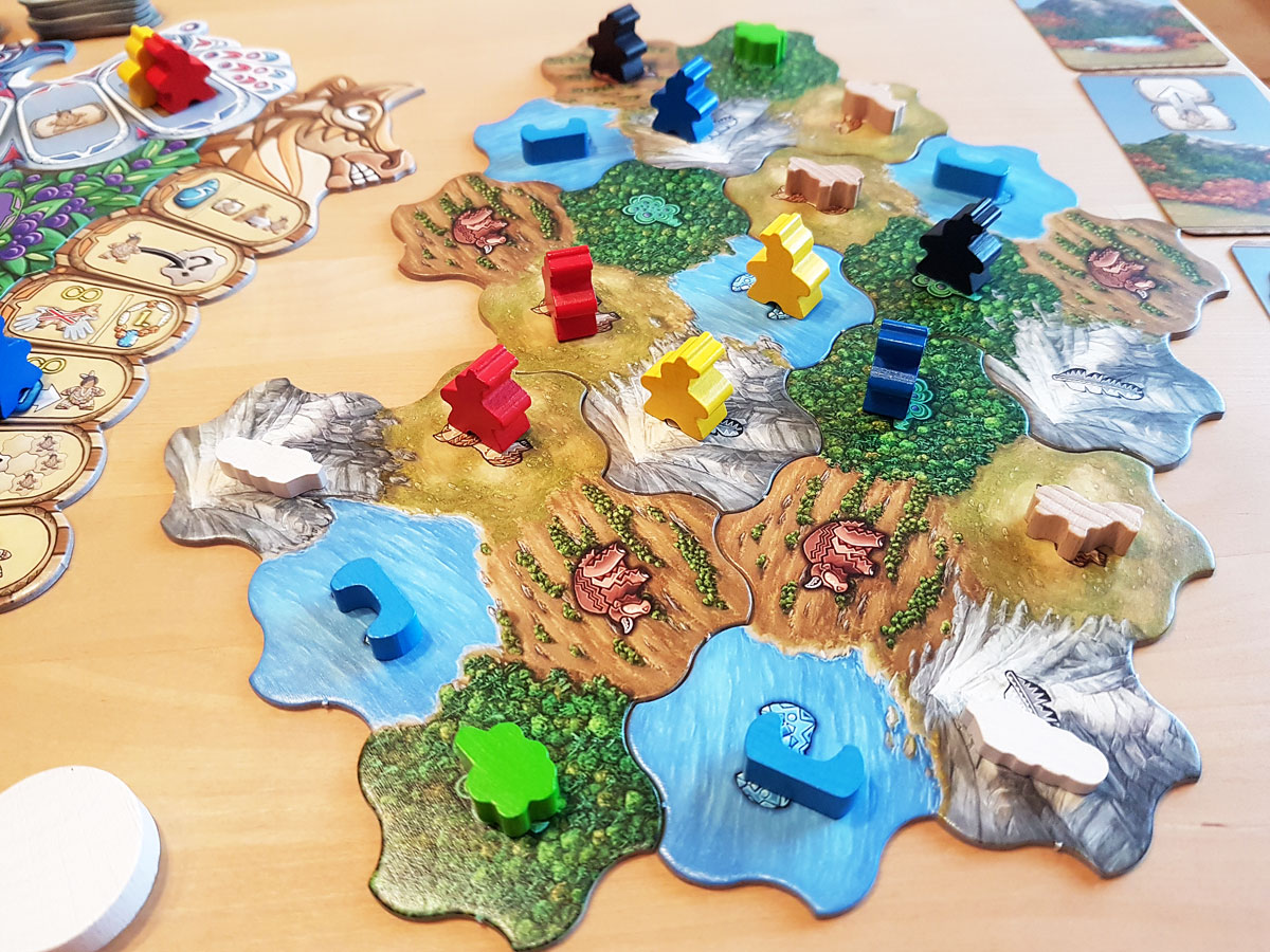 Was nicht so einfach ist, denn natürlich muss man jeweils agieren, was mir die Landschaften bieten. Diese Mischung aus Taktik und Strategie, zusammen mit den vielen kleinen kniffligen Aktionen und der gehörigen Portion Interaktion machen das Spiel zu einem richtigen Highlight.