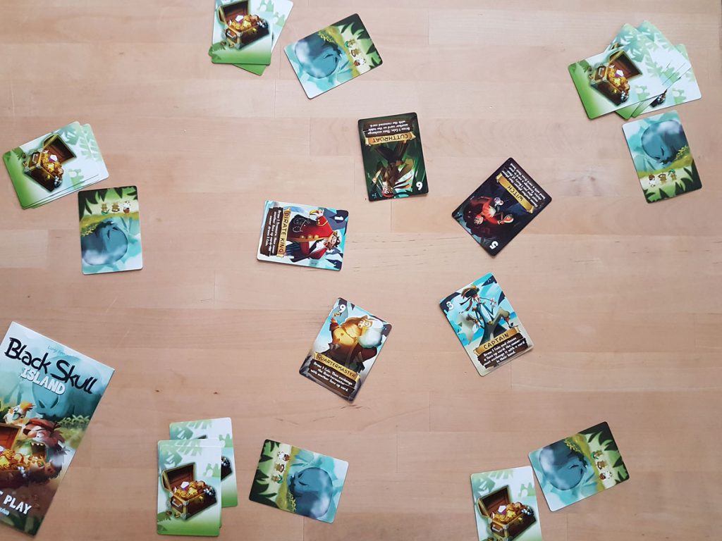 Black Skull Island von Luigi Ferrini, Grafiken von Magdalena Markowska, für 2 bis 9 Spieler ab 8, erschienen 2018 im Verlag Strawberry Studio ist ein witziges, kurzweiliges Poker- und Zockerspiel und dauert keine 20 Minuten. Seine Mitspieler abschätzen, die eigenen Möglichkeiten abwägen (bei zwei Karten auf der Hand schnell gemacht) und sich dann über geglückte Kombinationen freuen oder an der Heimtücke der Mitspieler verzweifeln: perfekte Unterhaltung für bis zu neun Spieler. Bei weniger als fünf ist das Spiel weniger unterhaltsam, da wird es mehr taktisch und der Spielspaß leidet darunter. Die Variante für zwei Spieler bietet mehr Spielspaß, kommt aber an den Gruppenspaß nicht heran.